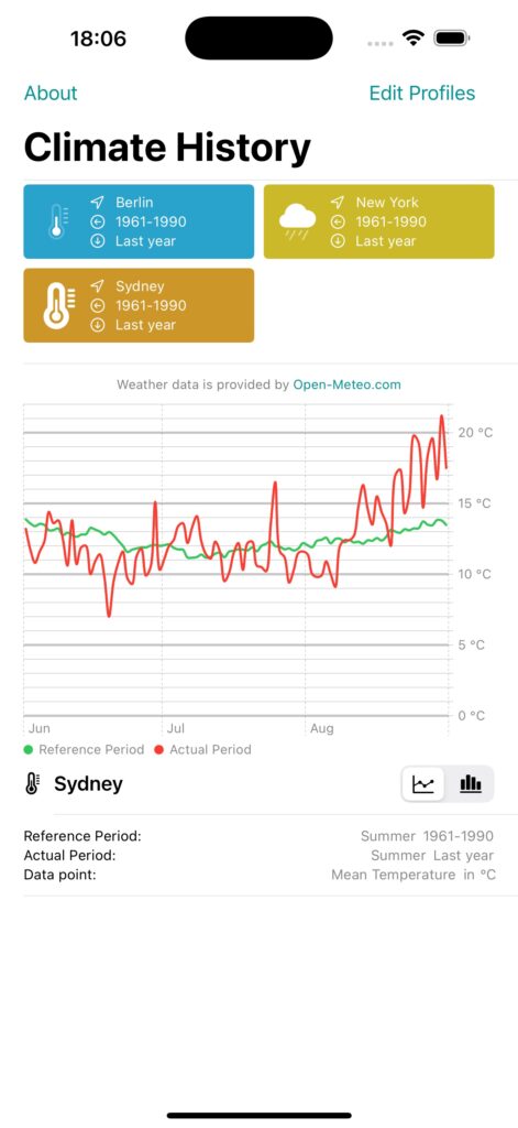 ClimateHistory can answer all these questions. Choose two periods in time and let ClimateHistory compare the scientifically validated weather data.